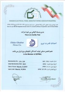 Membership of Electrical Panel Manufacturers Association Certificate